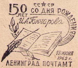 Ленинград. 150 лет со дня рождения Ивана Гончарова. Перо, книга, памятный текст.