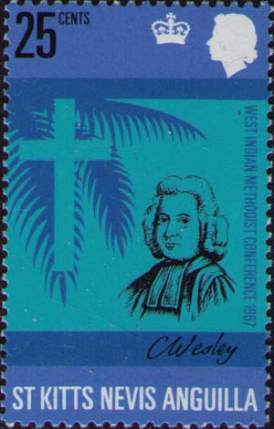 Портрет Чарльза Уэсли, пальмовая ветвь, христианский крест.